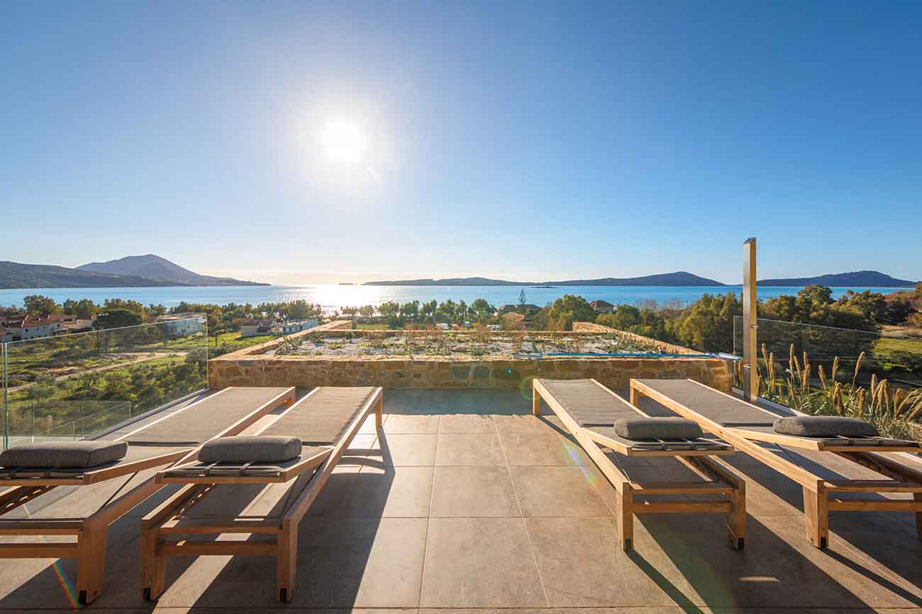 From the large sun terrace you have a breathtaking view of Navarino Bay and the azure sea