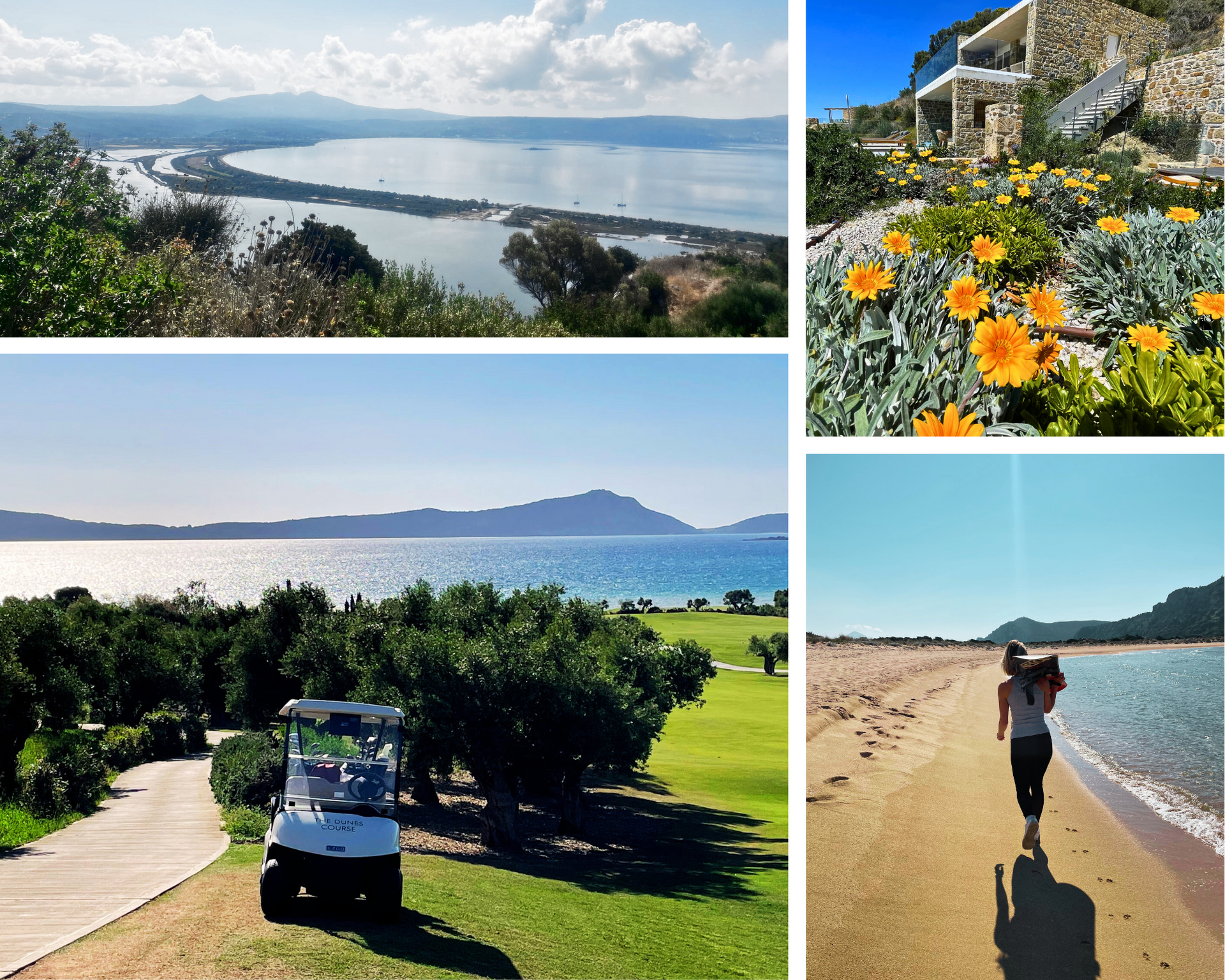 Von der großen Sonnenterrasse bietet sich Ihnen ein atemberaubender Blick auf die Navarino Bucht und das azurfarbene Meer